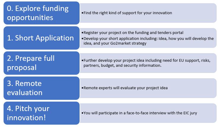 The application process on the EIC platform includes 5 steps which is elaborated in the figure below:
